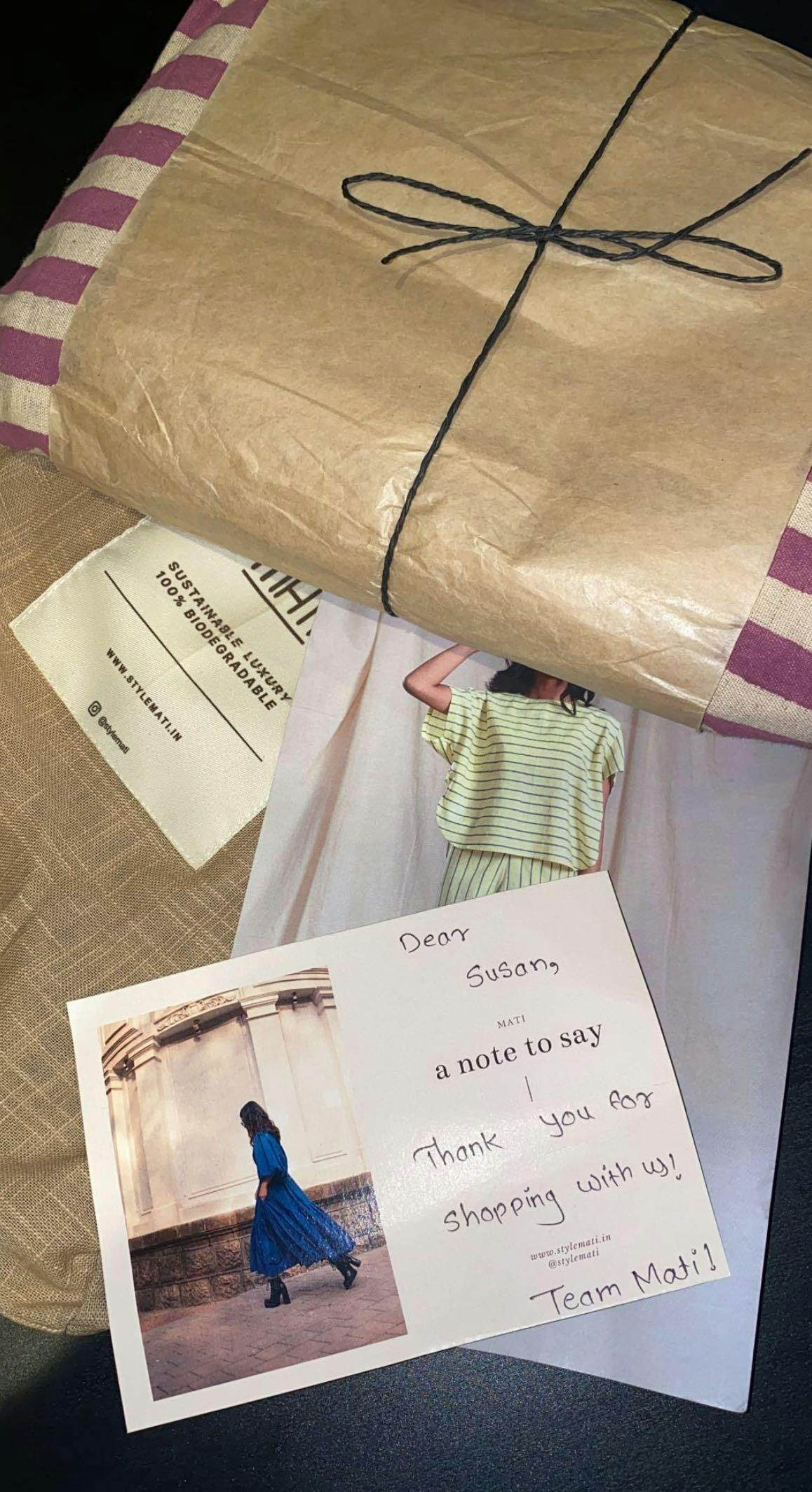 • We invest a great deal of love and care in the making of each Mati piece. As a company policy, we do not provide refund on any product sold. Once the Mati pieces are sold they can be exchanged for replacement or a credit note (provided the aforementioned terms and conditions are met). If for some reason, you are unsure of the size or we’ve missed a spot and you’d like to exchange them, you can write to us at orders@stylemati.in and someone from our customer care team will contact you within 1-2 business days and will guide you through the process of returning and exchanging
