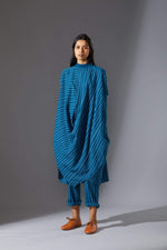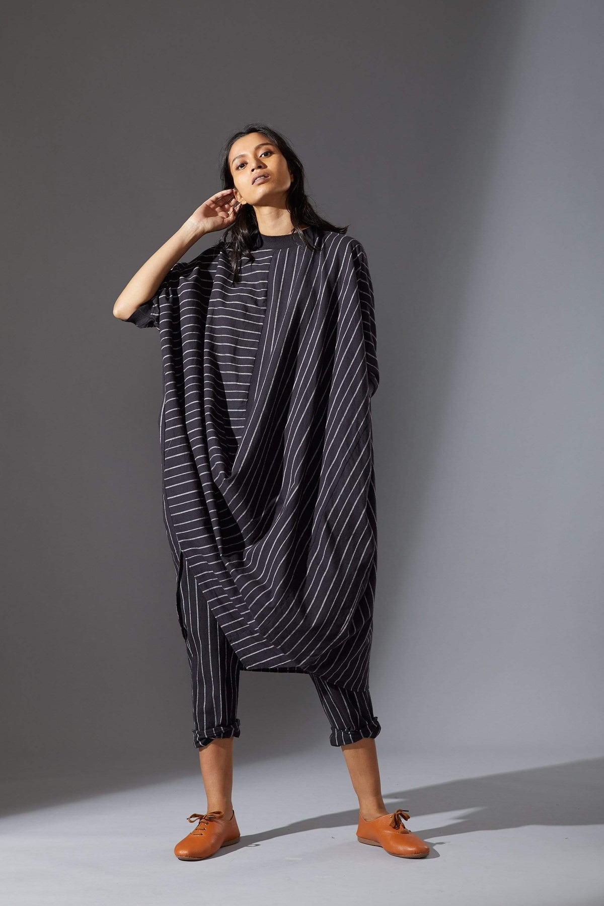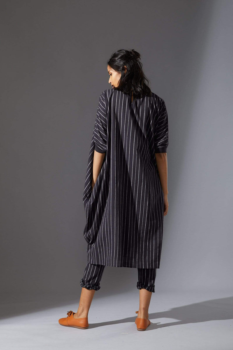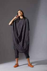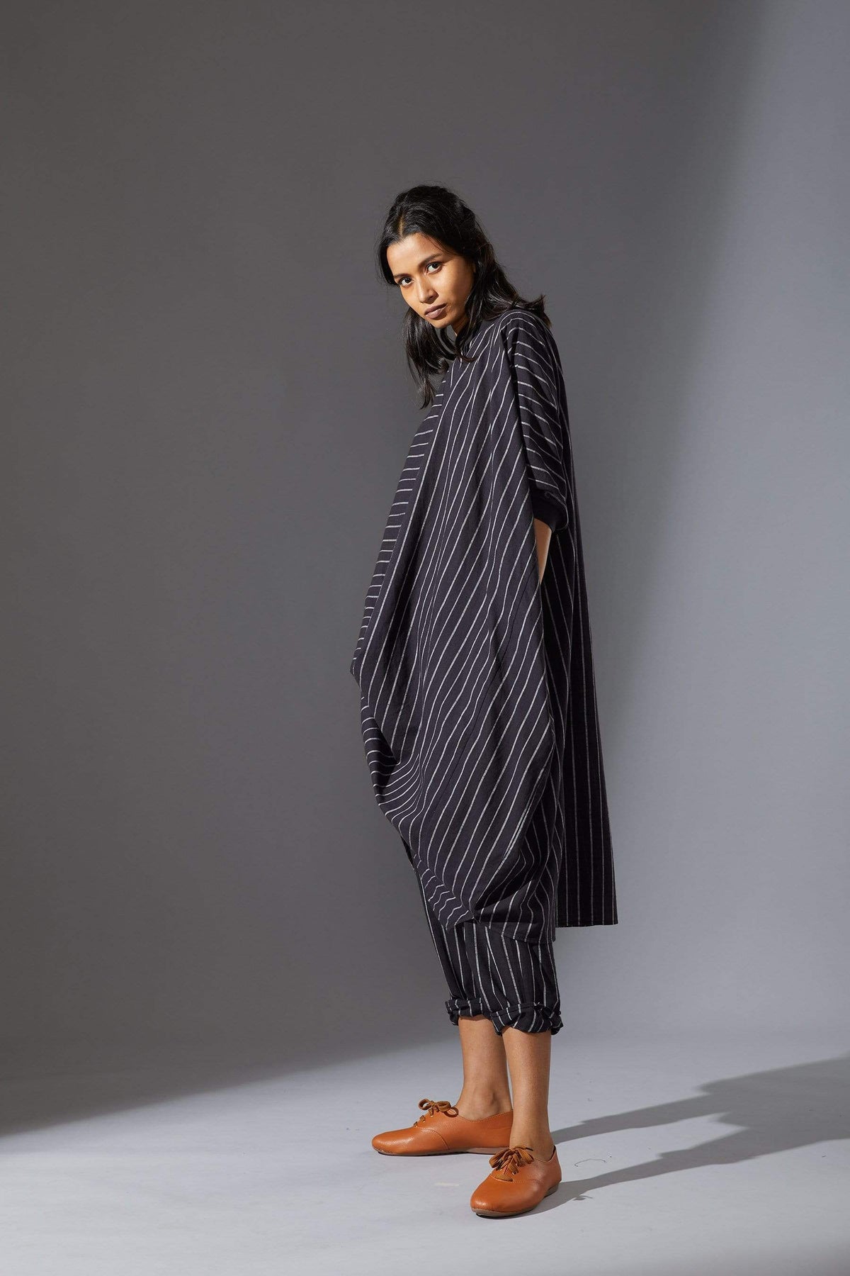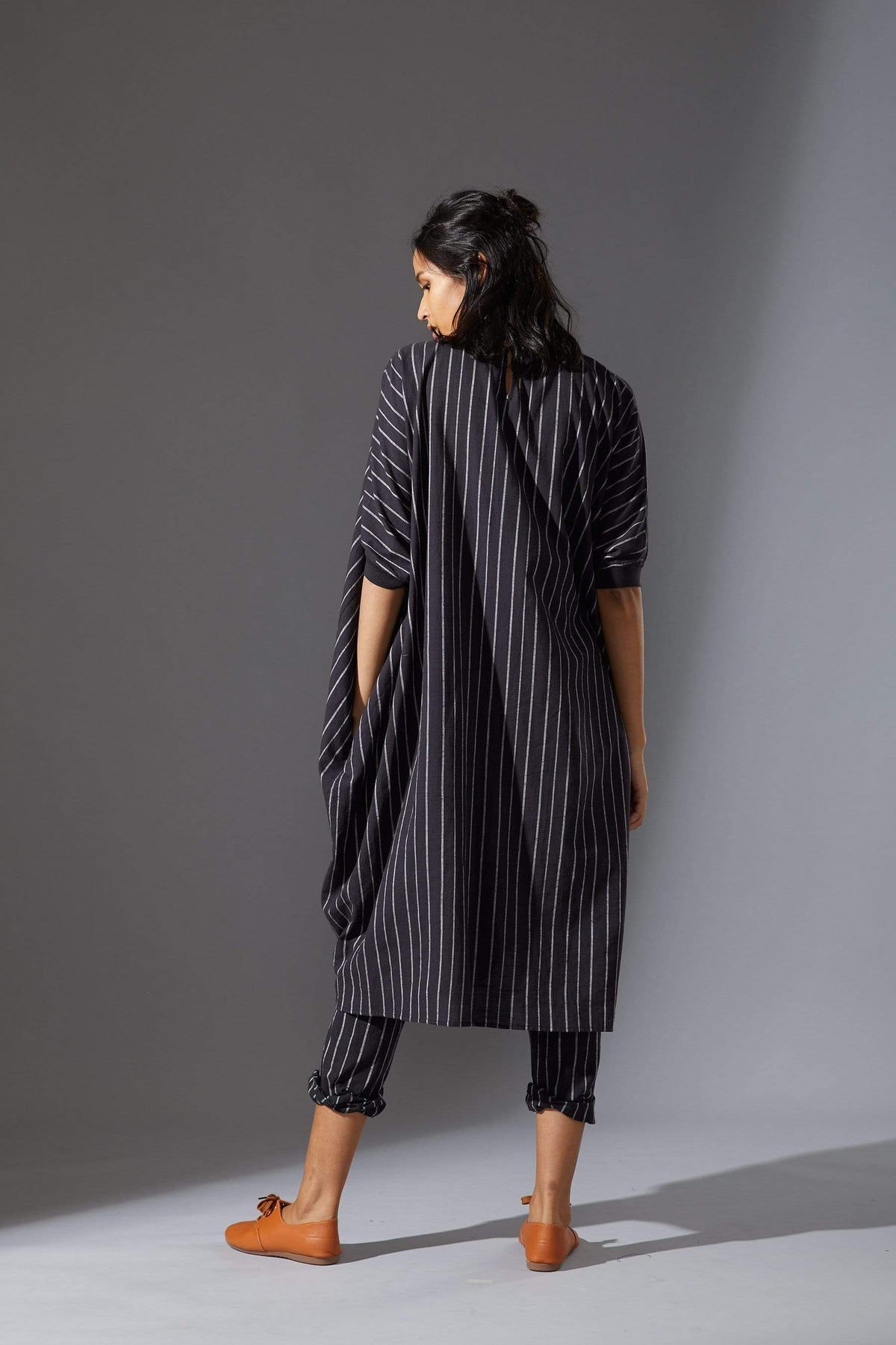 Mati Ribbed Collar Black Cowl Tunic Set with Pants