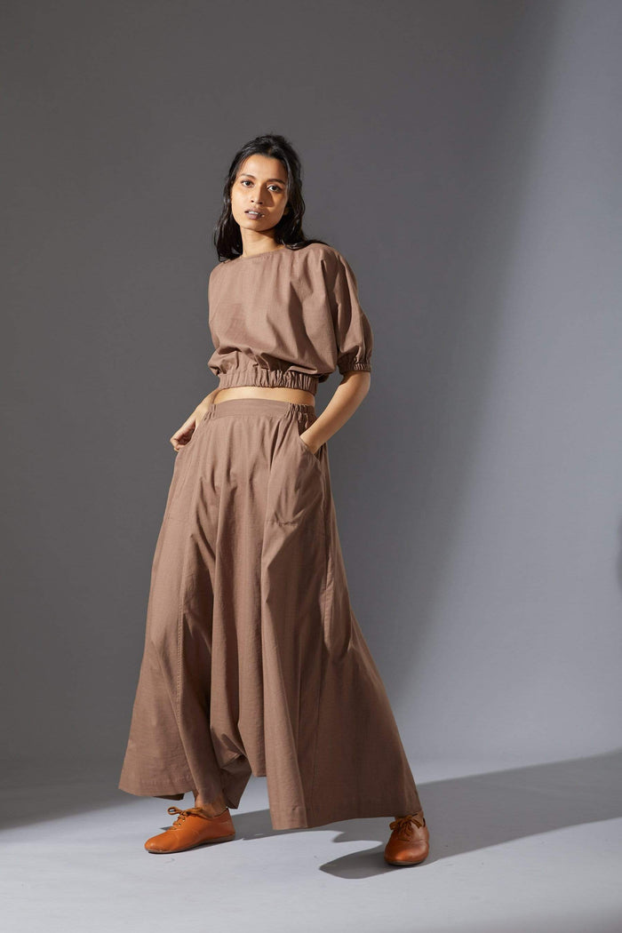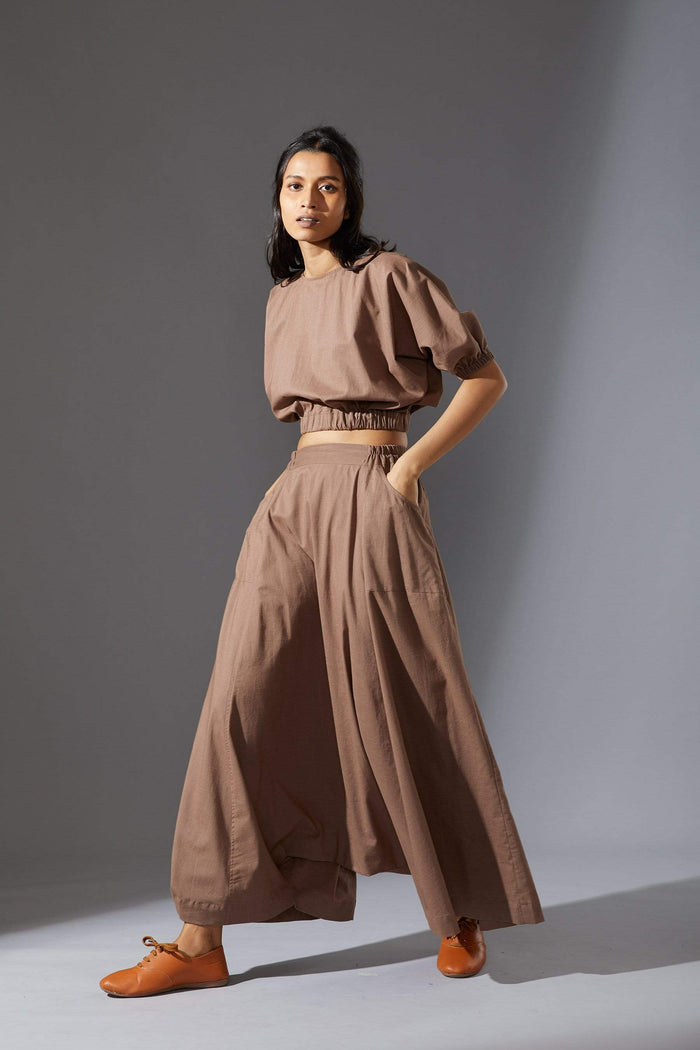 Mati Ribbed Collar Rust Cowl Tunic Set with Pants
