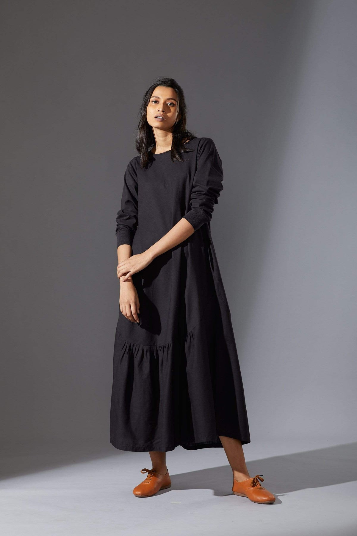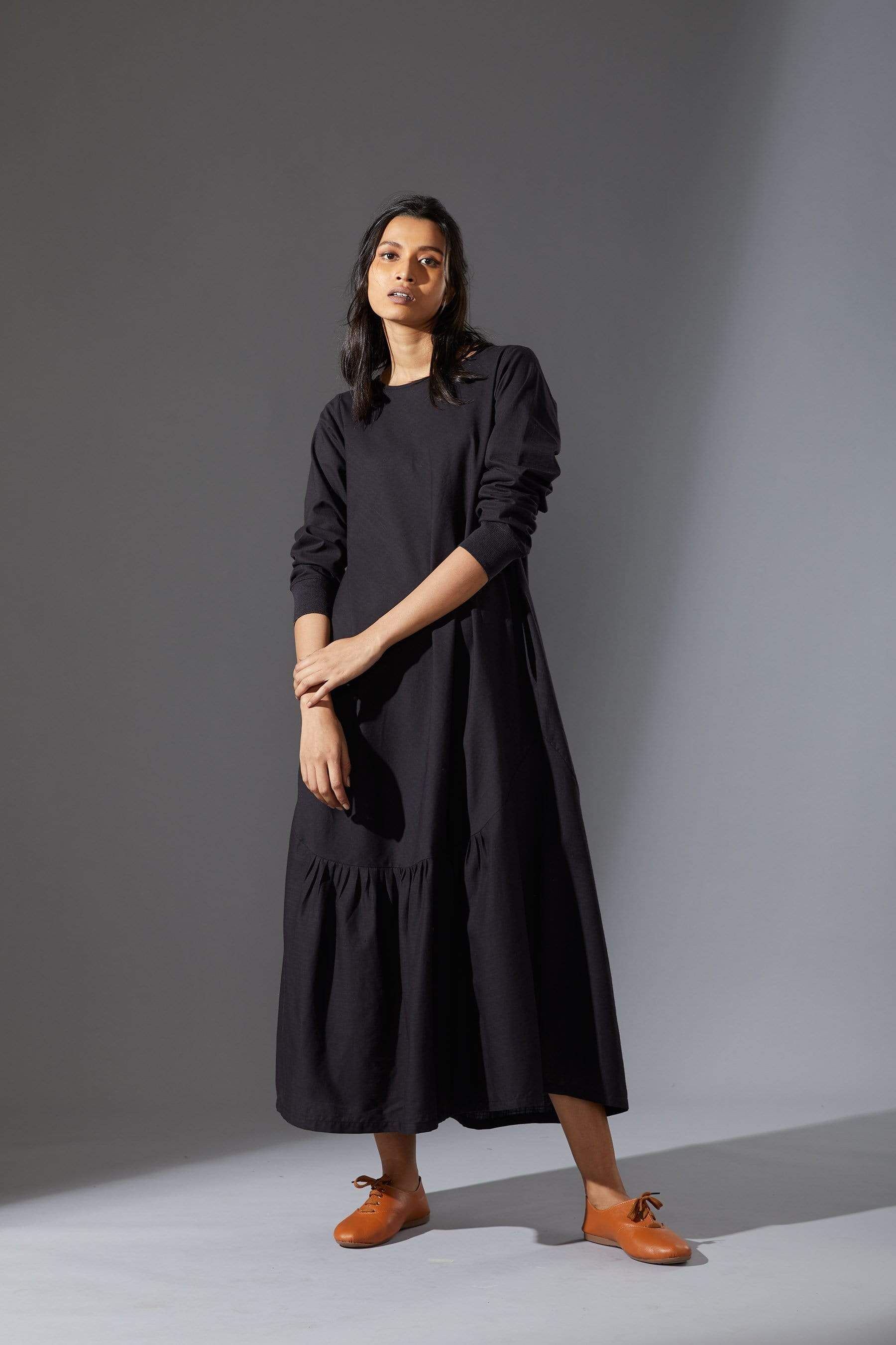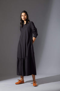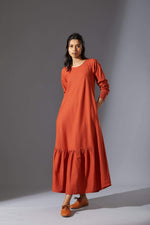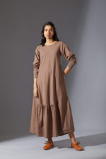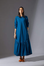 A beautiful shift dress made with handwoven cotton slub. Cut in bias this dress falls perfectly on the body, further you can style it with a tan brown belt, scarf or a nice long neckpiece.