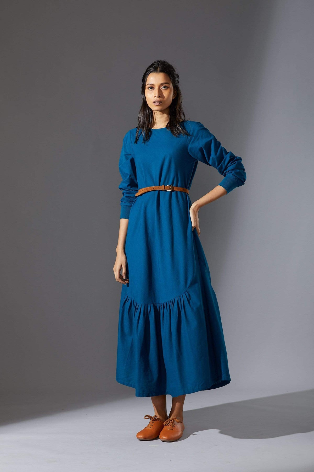 A beautiful shift dress made with handwoven cotton slub. Cut in bias this dress falls perfectly on the body, further you can style it with a tan brown belt, scarf or a nice long neckpiece.