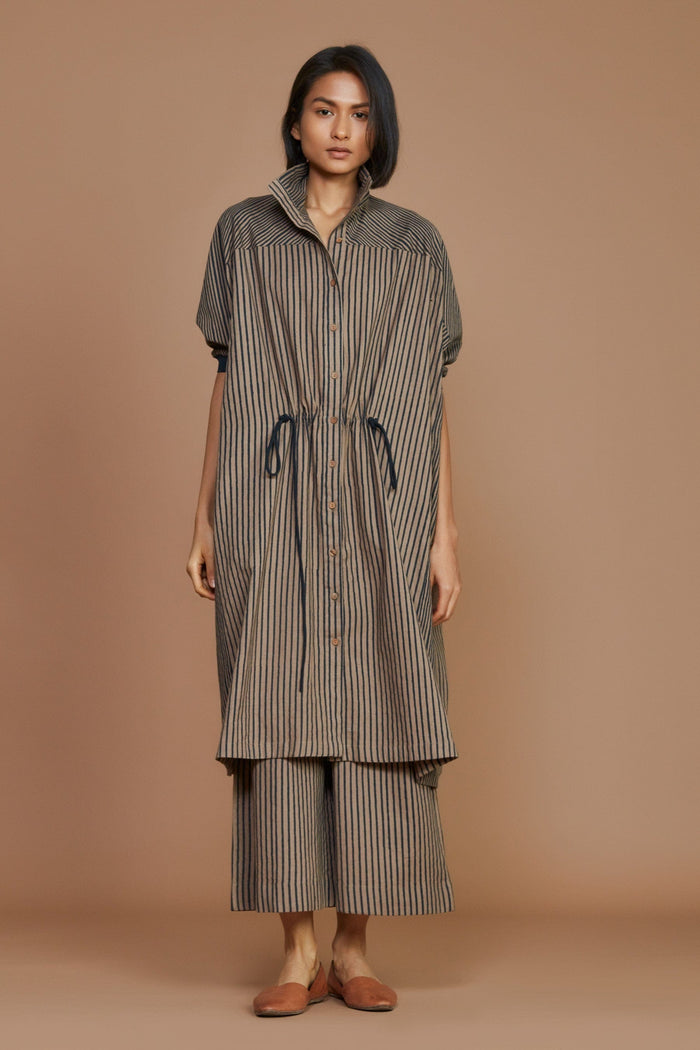 Brown With Charcoal Striped Kaftan Dress