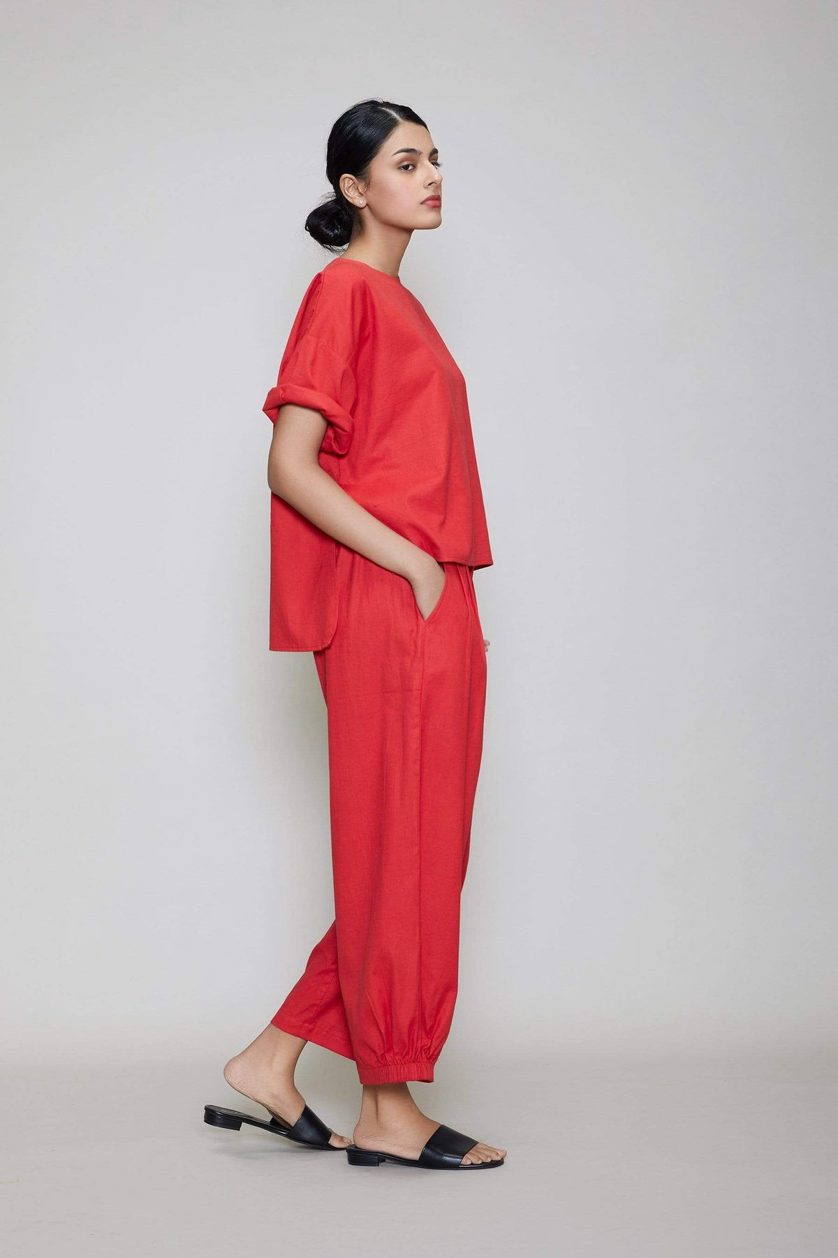 A comfortable anti-fit top and easy fit pants in beautiful bright colors. Wear it together or break the set and style it with pieces from your wardrobe!! This versatile set is going to be your favorite co-ords this summer!!