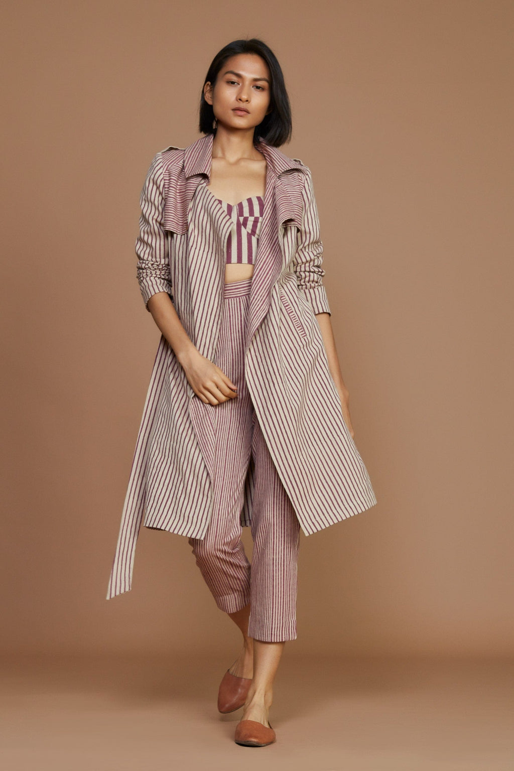 Ivory with Mauve Striped Trench & Corset Co-Ord Set (3 PCS)
