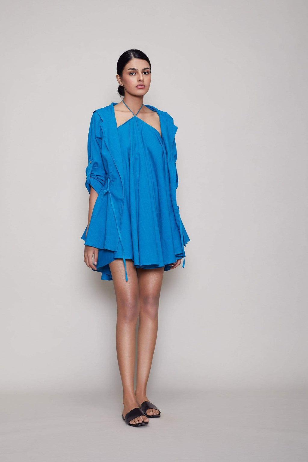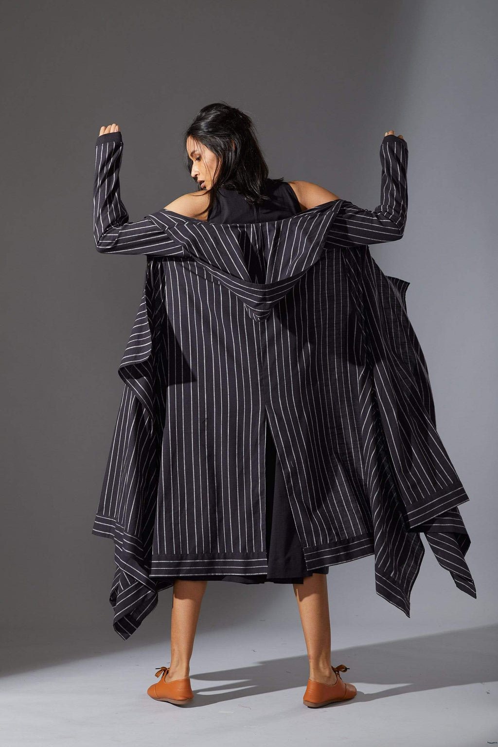Brown with Charcoal Striped Trench & Corset Co-Ord Set (3 PCS)
