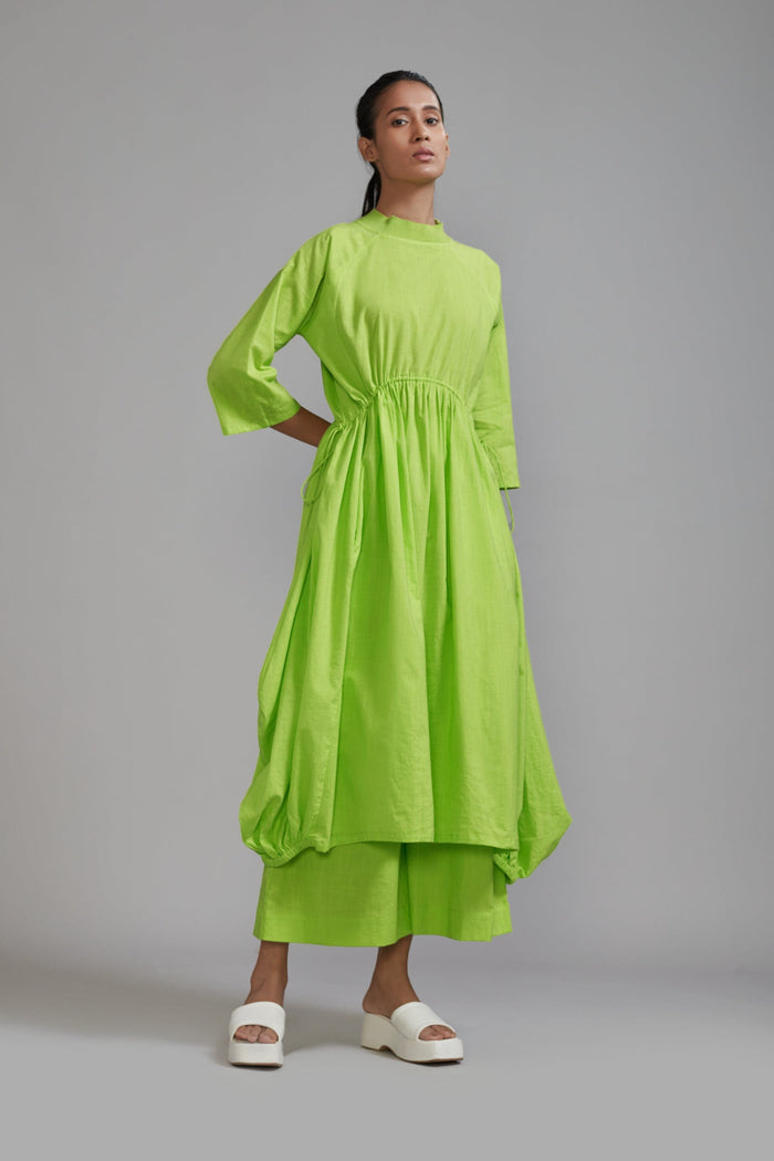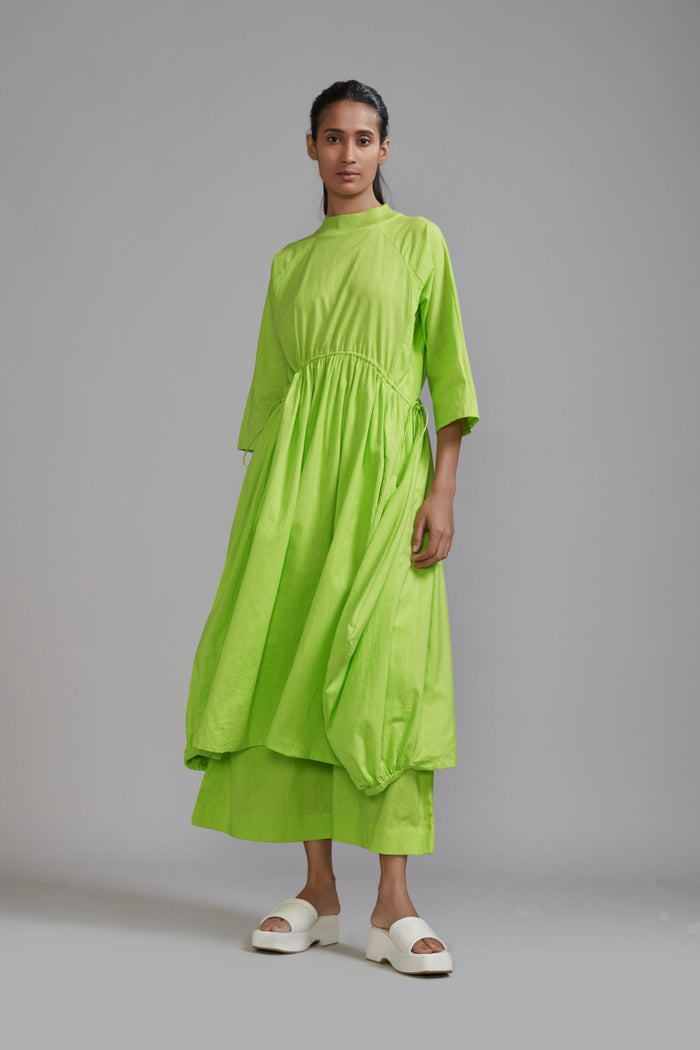 Off-White with Neon Green Saree & Smocked Bodysuit Set (2 PCS)