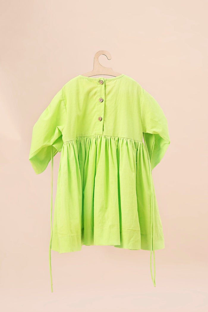 Mini MATI Girls Neon Green Ruffle Sleeve Dress