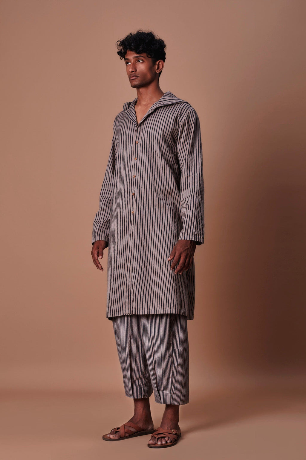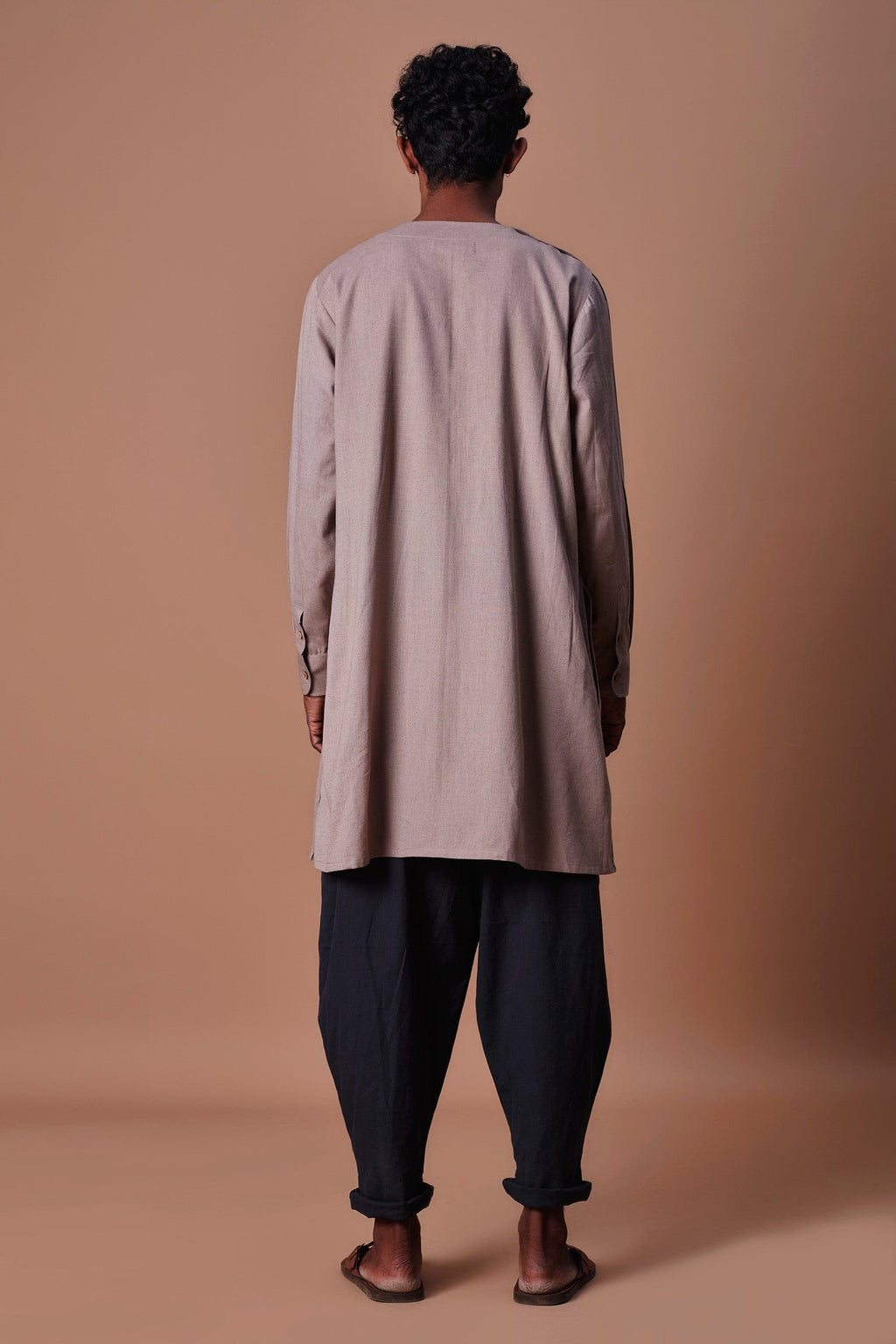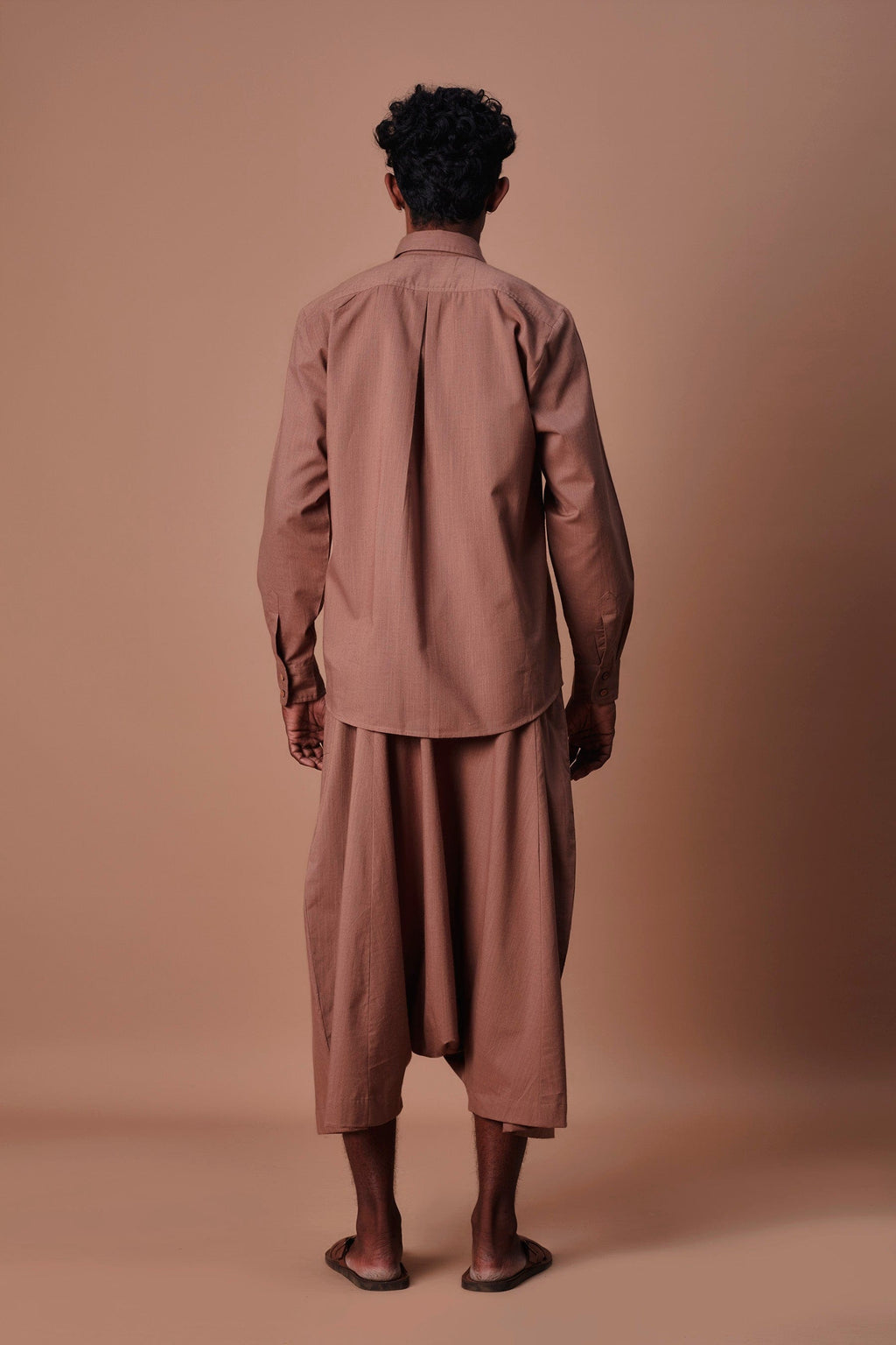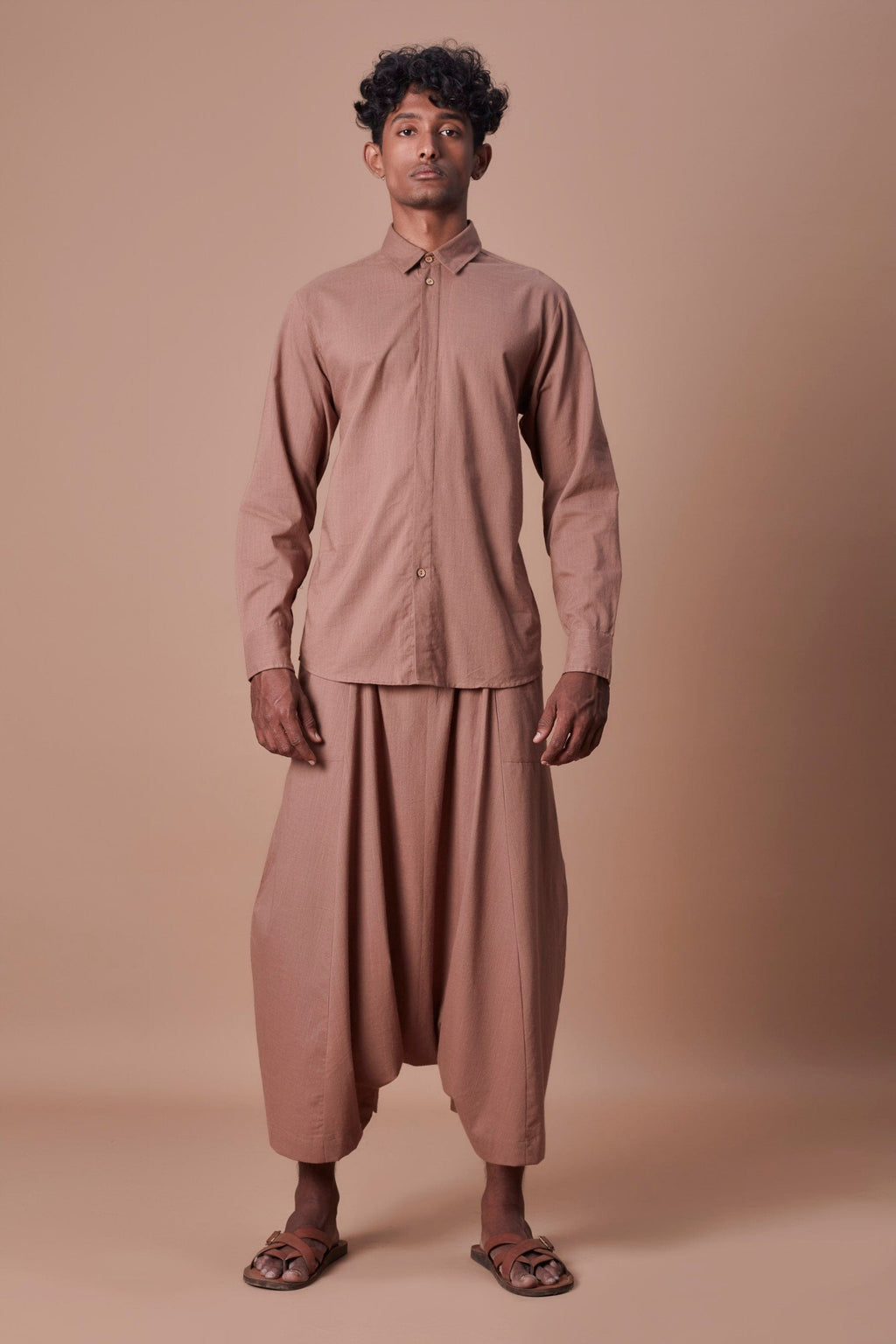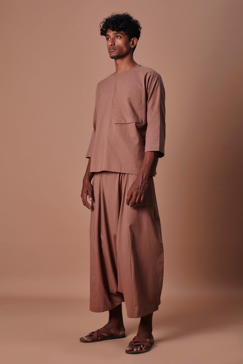 Men's Overlap Trouser Jacket Set - Beige & Brown (3 PCS)