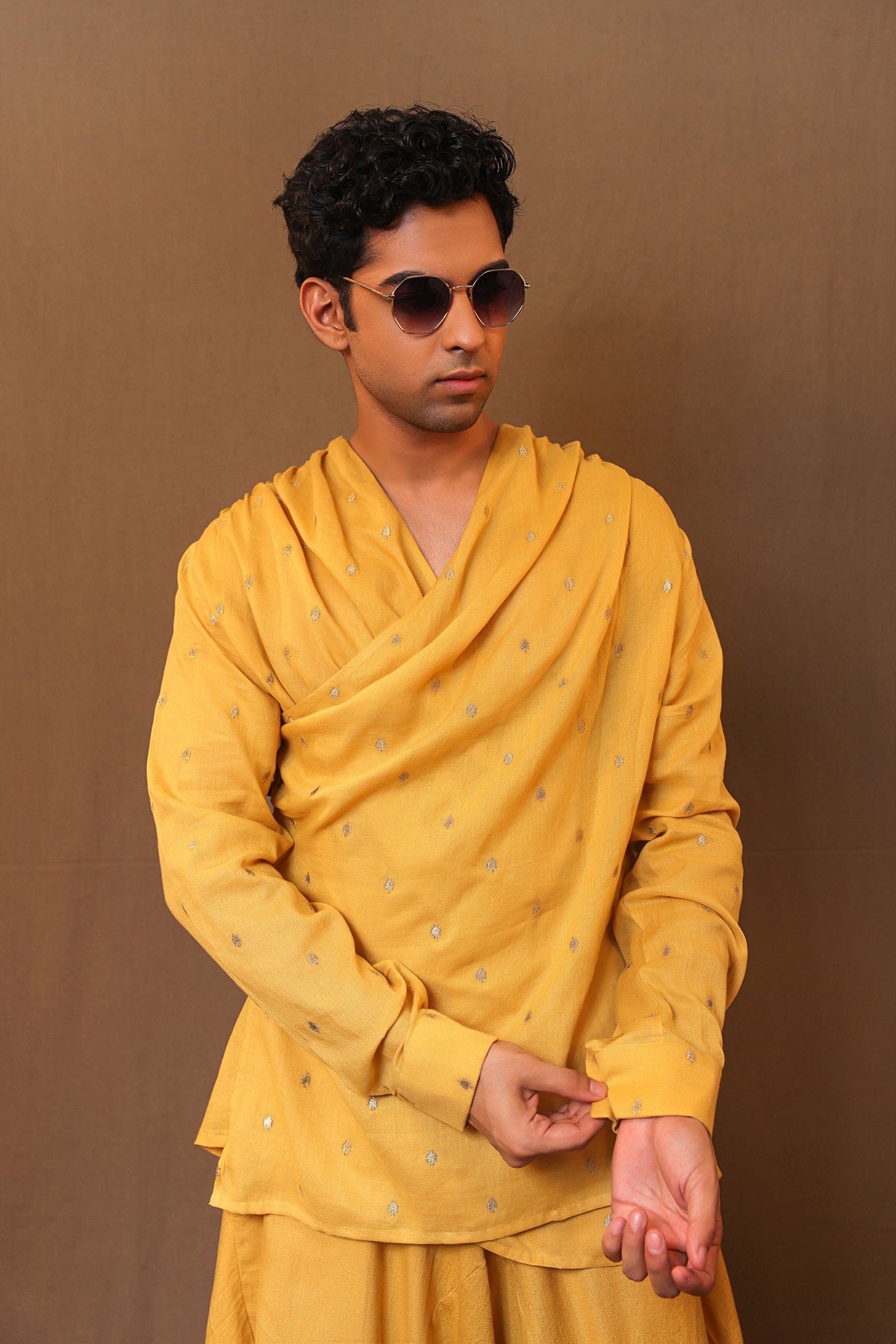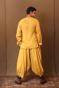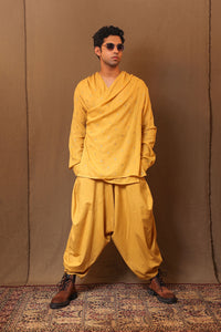Overlap shirt made in embroidered handspun soft cotton. Side buttons and cuffs on the sleeves. Team it up with the baggy pants to complete the look.