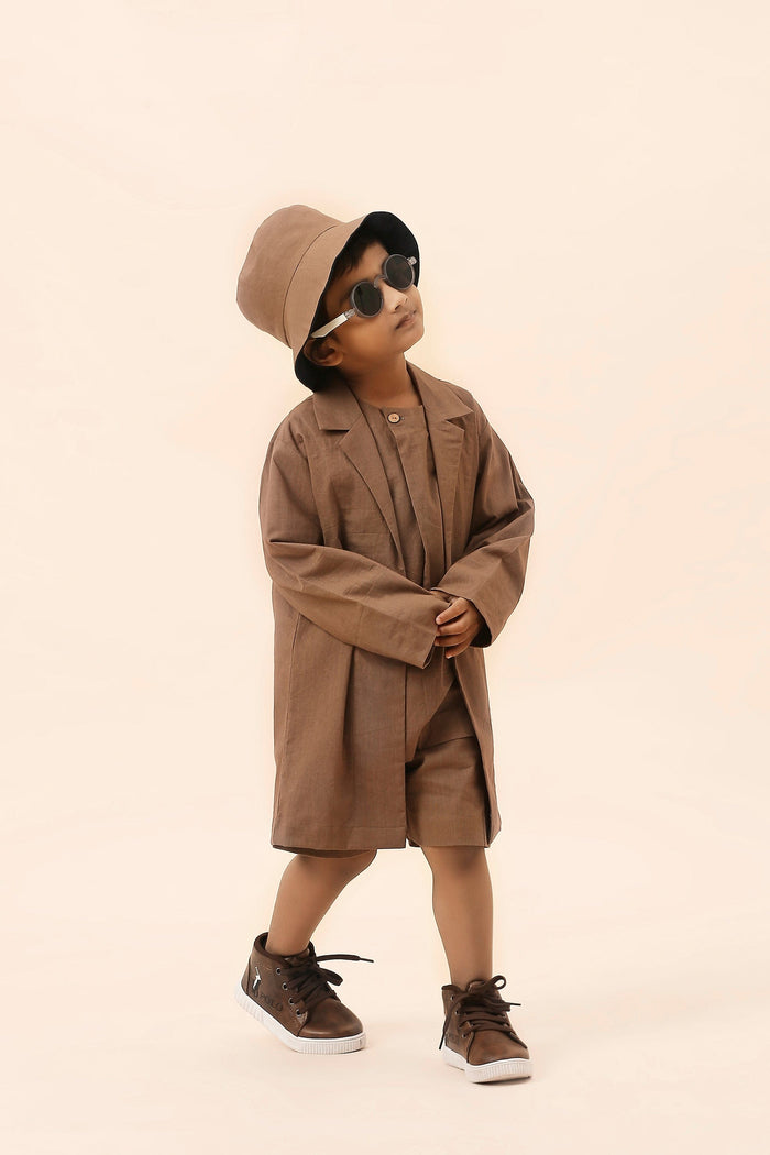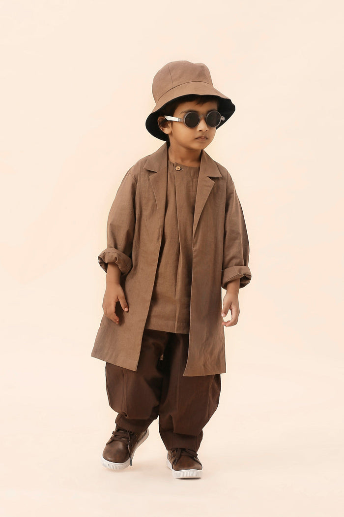 Mini MATI Boys Overlap Trouser Jacket Set - Beige & Brown (3 PCS)