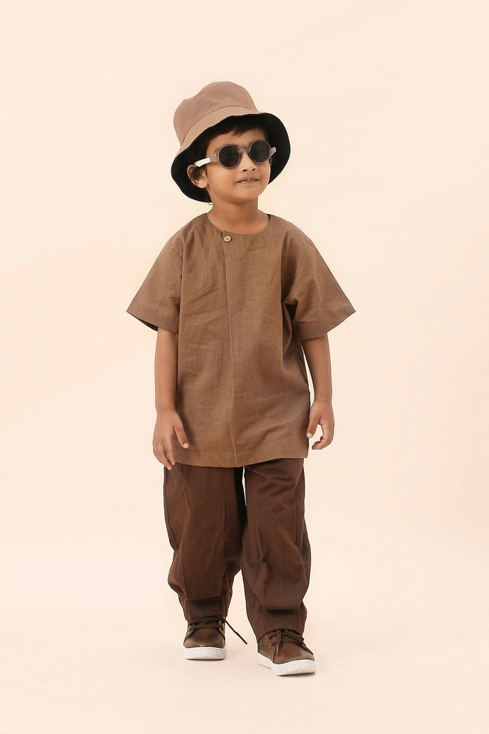 Mini MATI Boys Overlap Shirt & Trouser Set - Beige & Brown (2 PCS)