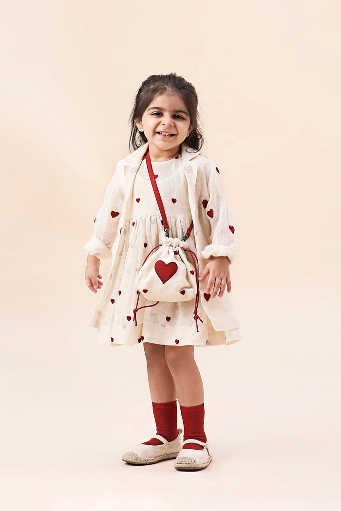 Mini MATI Girls Rummy Dress-Oatmeal Hearts