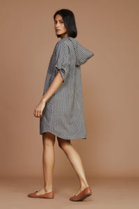 A stylish and comfortable hoodie dress can be a cool update to your summer wardrobe. This dress comes with two functional pockets. Wear it with our Striped Hera pants and make in a co-ord.