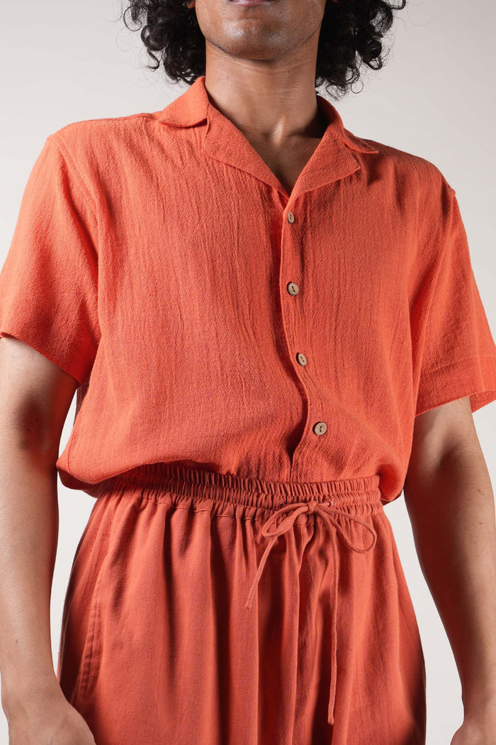 Men's Rust Cuban Collar Half-Sleeve Shirt