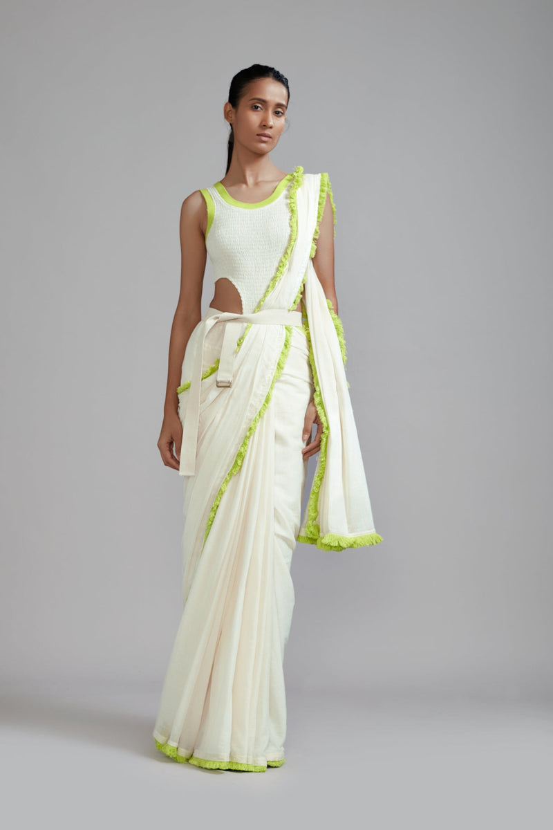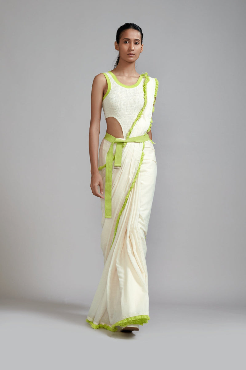 100% COTTON MUL With AZZO Free Dye - Off-White with Neon Green