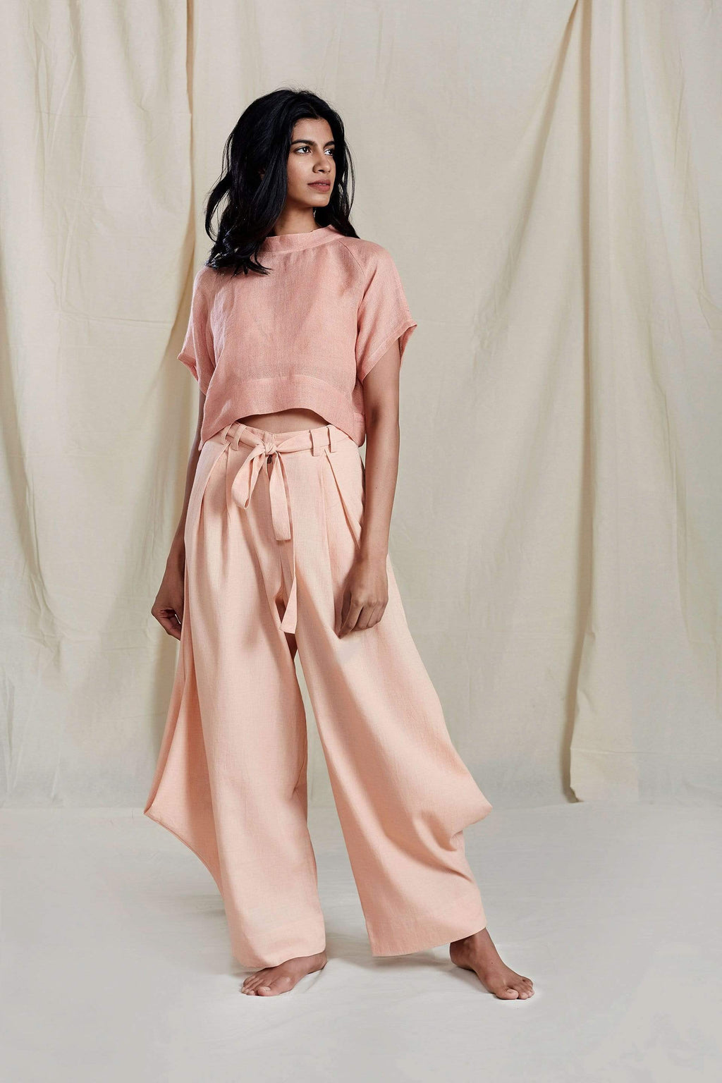 Handmade Pure Linen Offwhite Coord Set with Thread Embroidery by Sustainable Clothing Label MATI