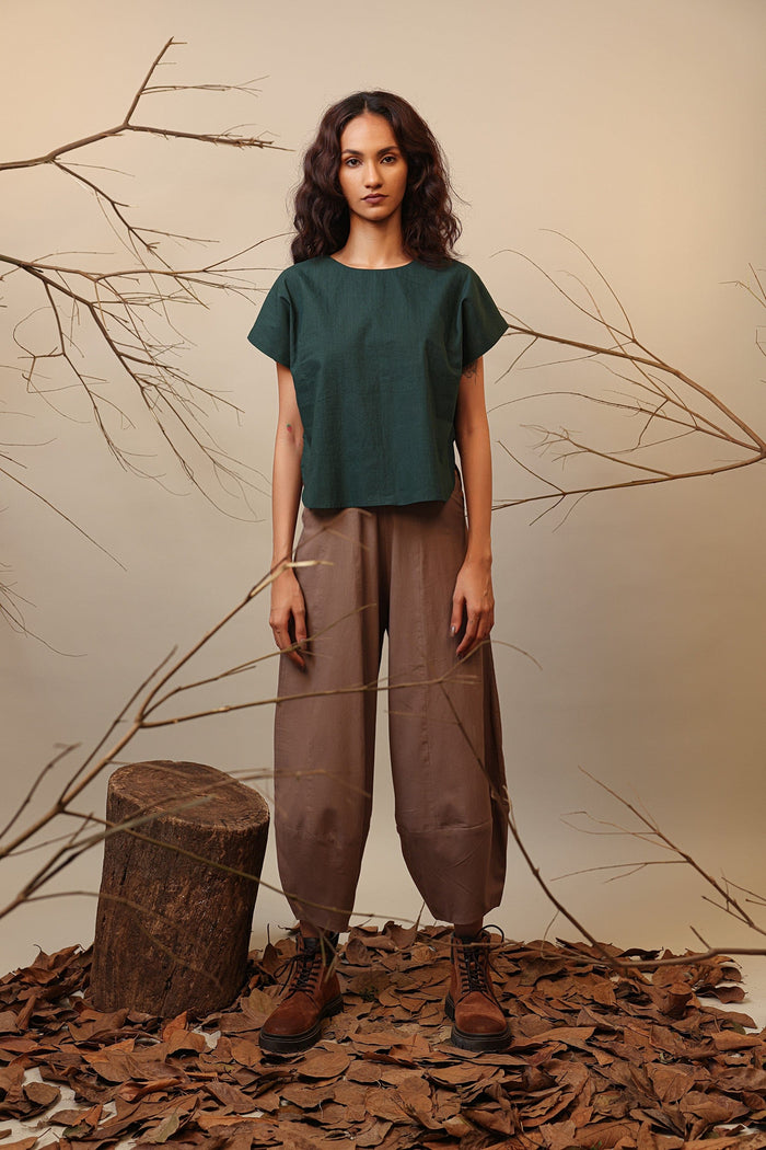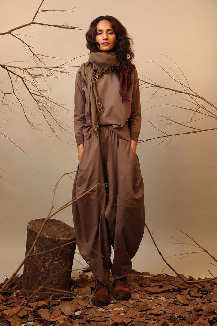Mati Ribbed Collar Rust Cowl Tunic Set with Pants