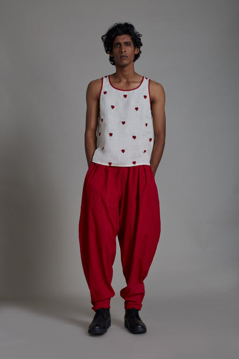 This relaxed-fit balloon pleated pants with elastic at the back make it breezier and comfortable with side pockets and back elasticated for better fit and comfort. Double fold the hem for super casual styling. Complete the set by pairing it with embroidered Ganji