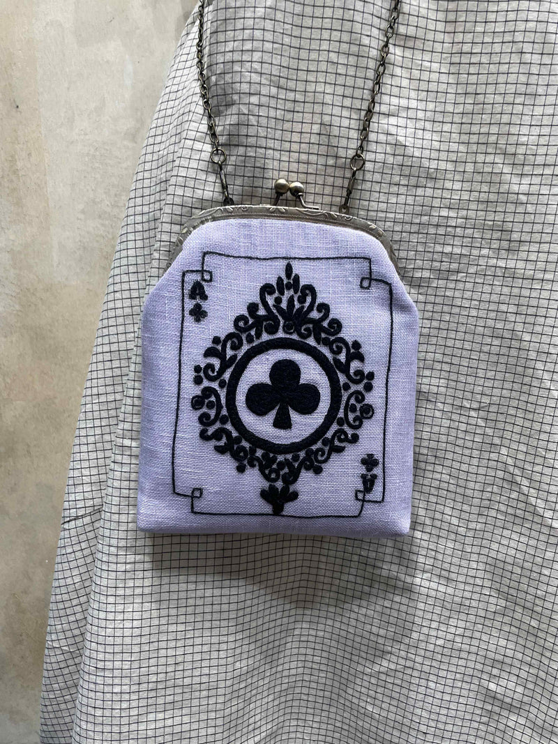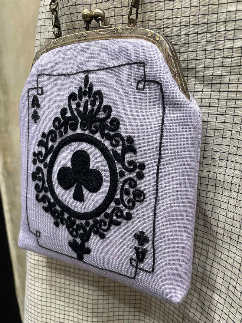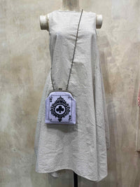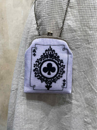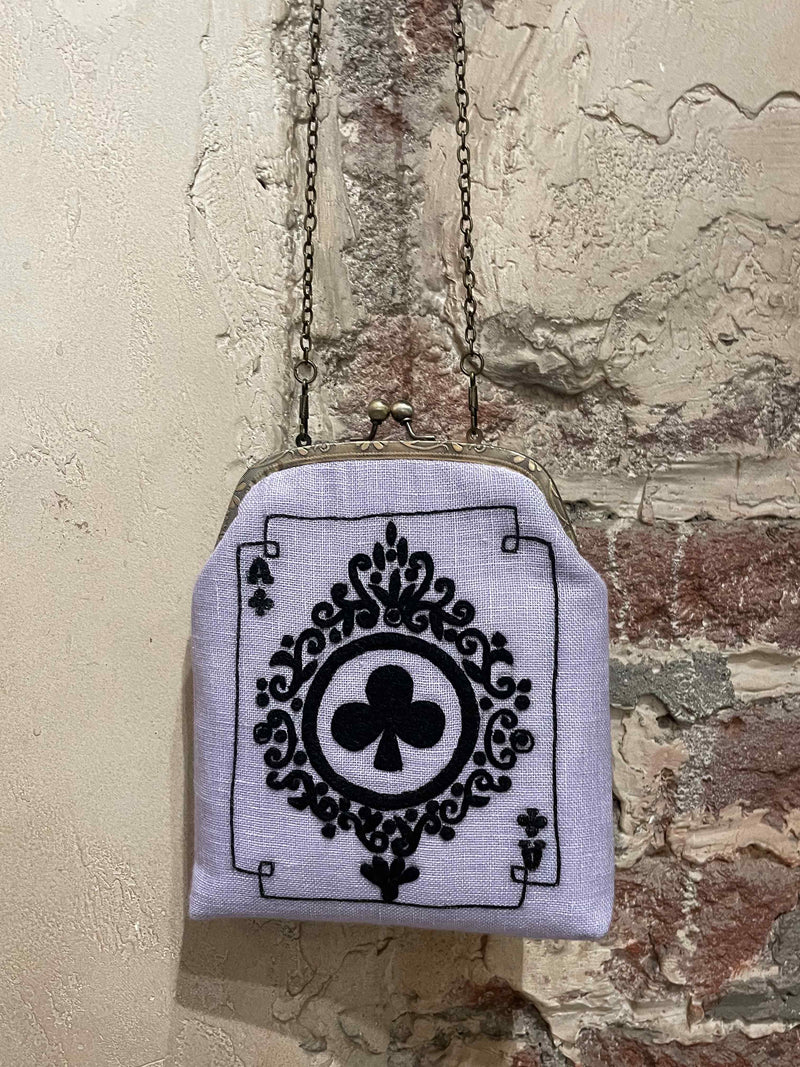 Beautifully hand-embroidered bags made in pure linen with hand-block printing. Brass frames with carvings and a long chain that is detachable for cross-body. Can easily fit in your cell phones and essentials. Perfect for your Diwali parties !! Amp up your Taash outfits with a matching Card Clutch.