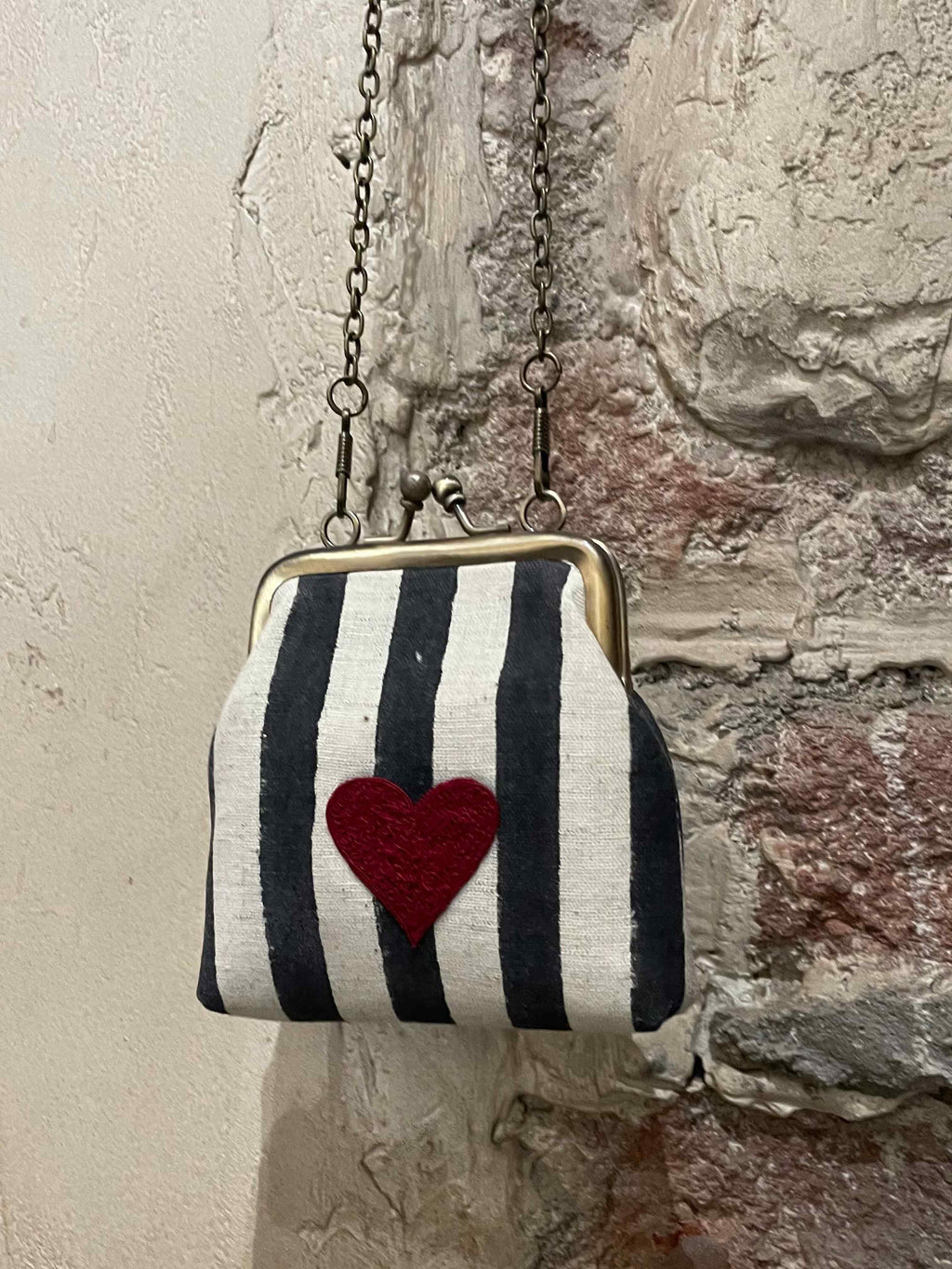 Stripe Tora Shirt and Scallop Shorts Set-Black with Red Heart (2 PCS)