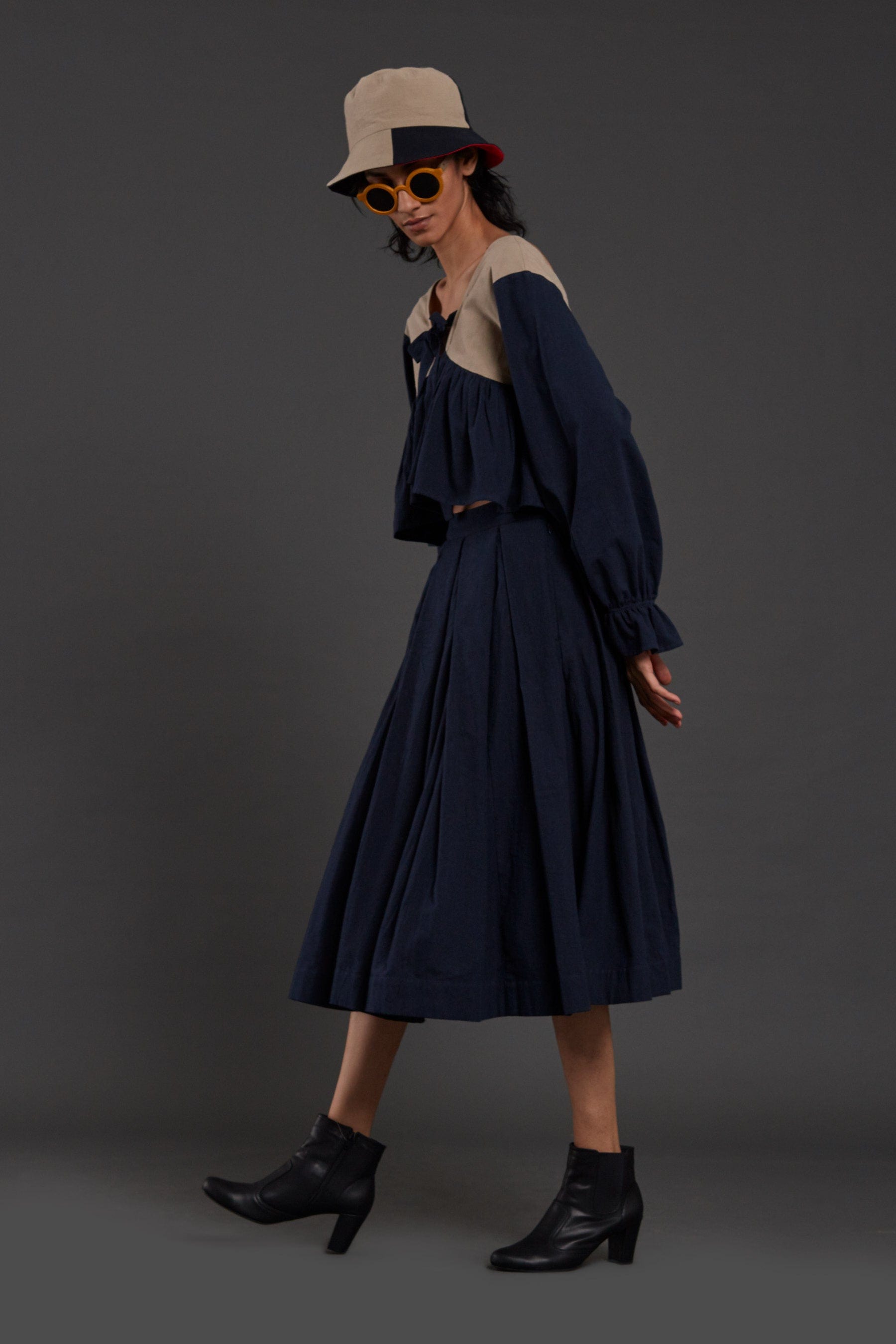 Since all pieces are individually handmade and tailored in my studio, each garment is unique and one-off. Therefore, please expect subtle differences in color and form.