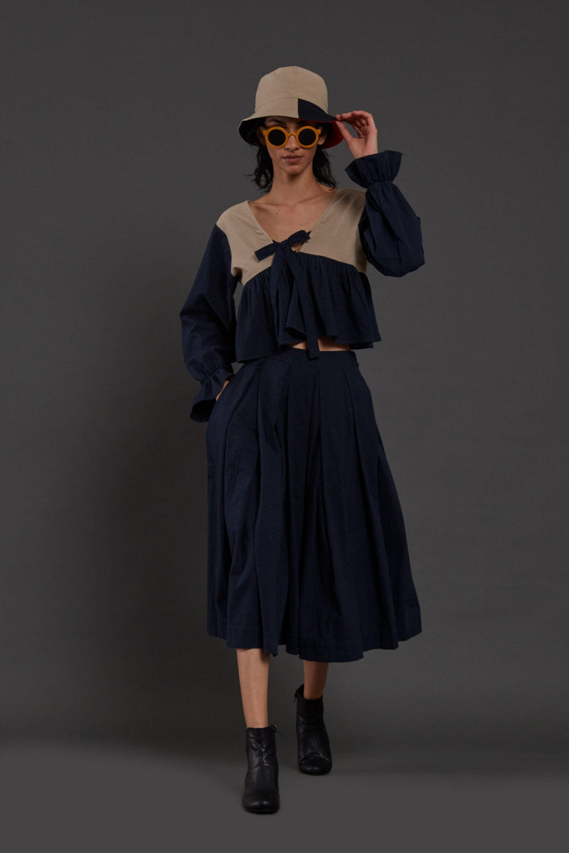 Beige & Navy Blue Bow Top