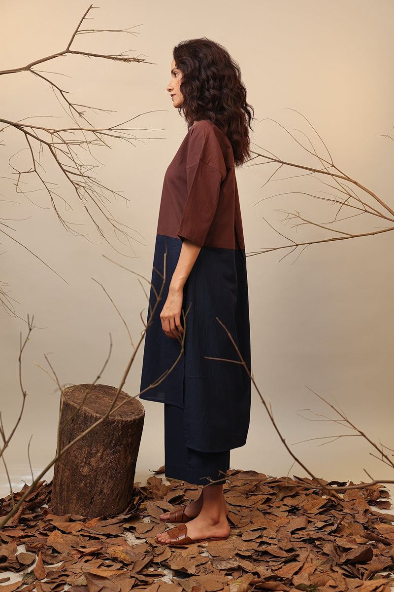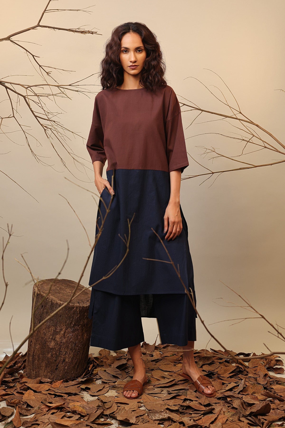 A short and long colour block tunic with back button opening. Team it up with the capre pants from this collection to complete the look. Wear a scarf of any colour from this collection and have fun styling in winters.