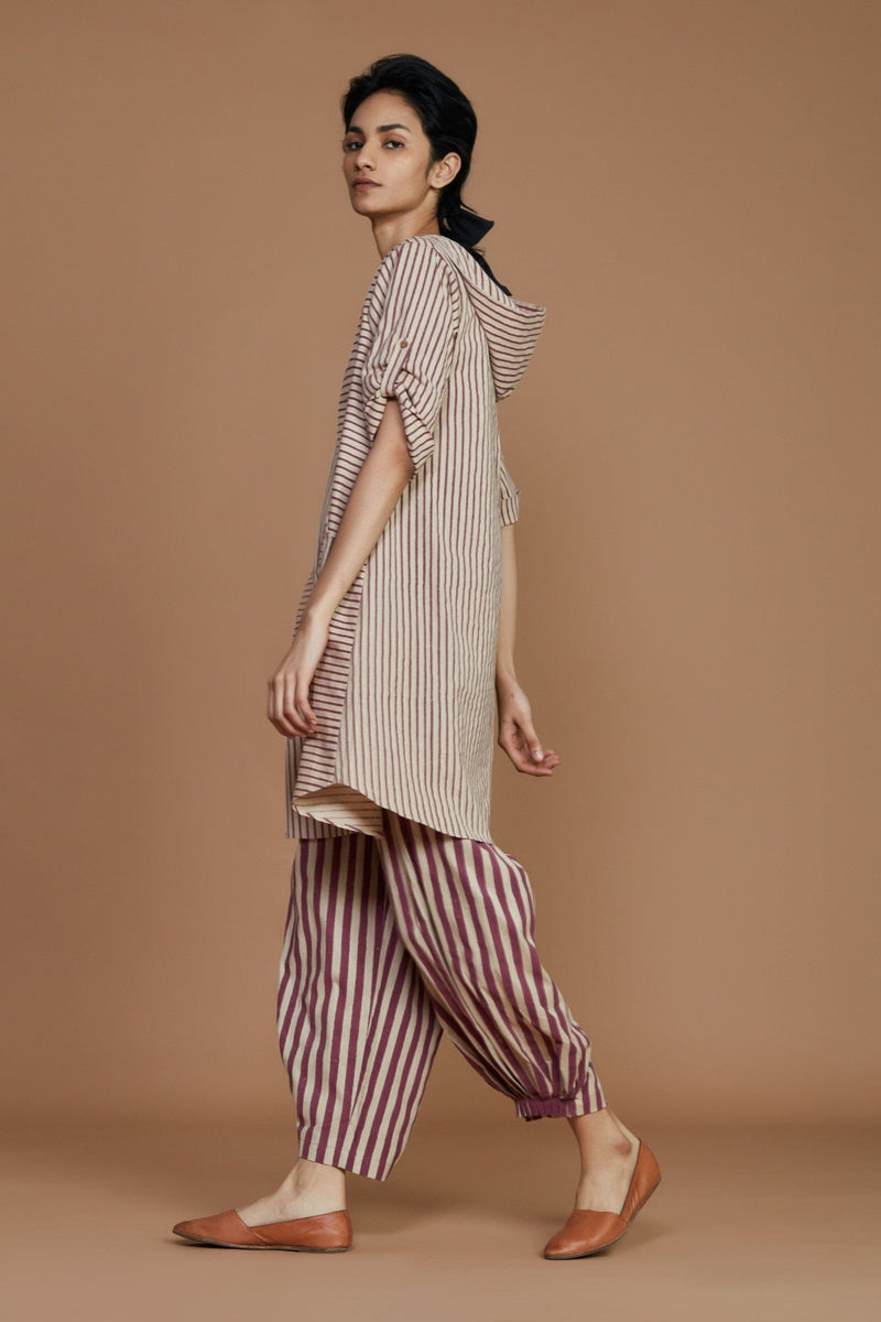 Ivory With Mauve Striped Hooded Co-Ord Set