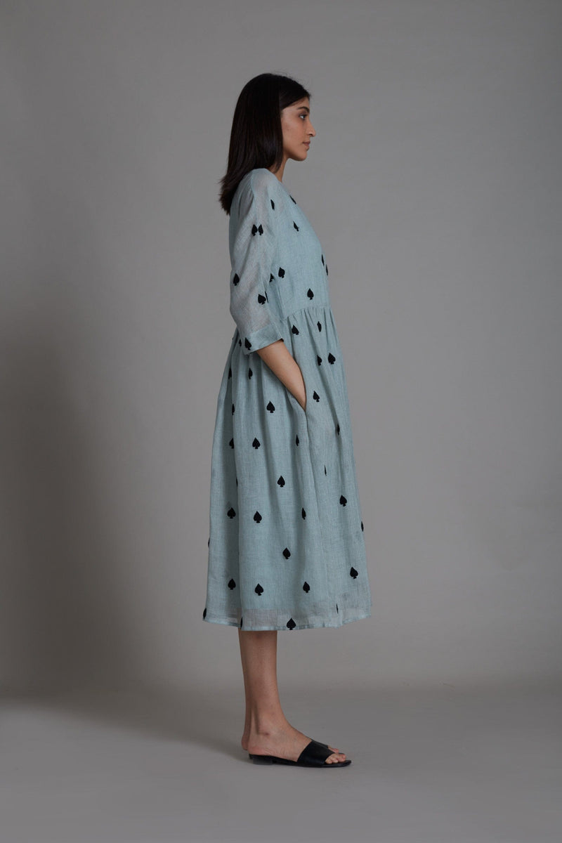 ♥︎FABRIC: Handwoven Linen - blue with thread embroidery