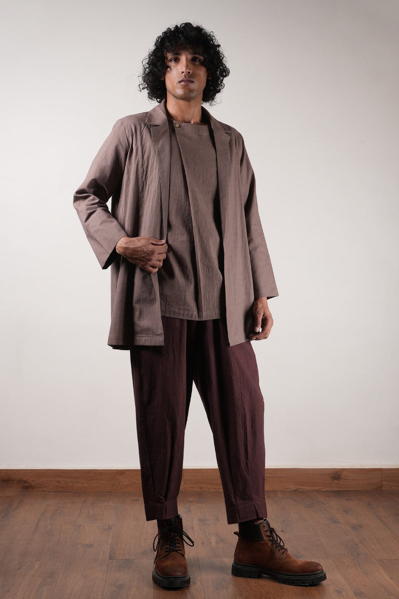 Men's trouser with pleat detail at the hems, side pockets and elasticated waist with drawstrings. Team it up with our t-shirt or short kurta from this collection to complete the co-ord set.