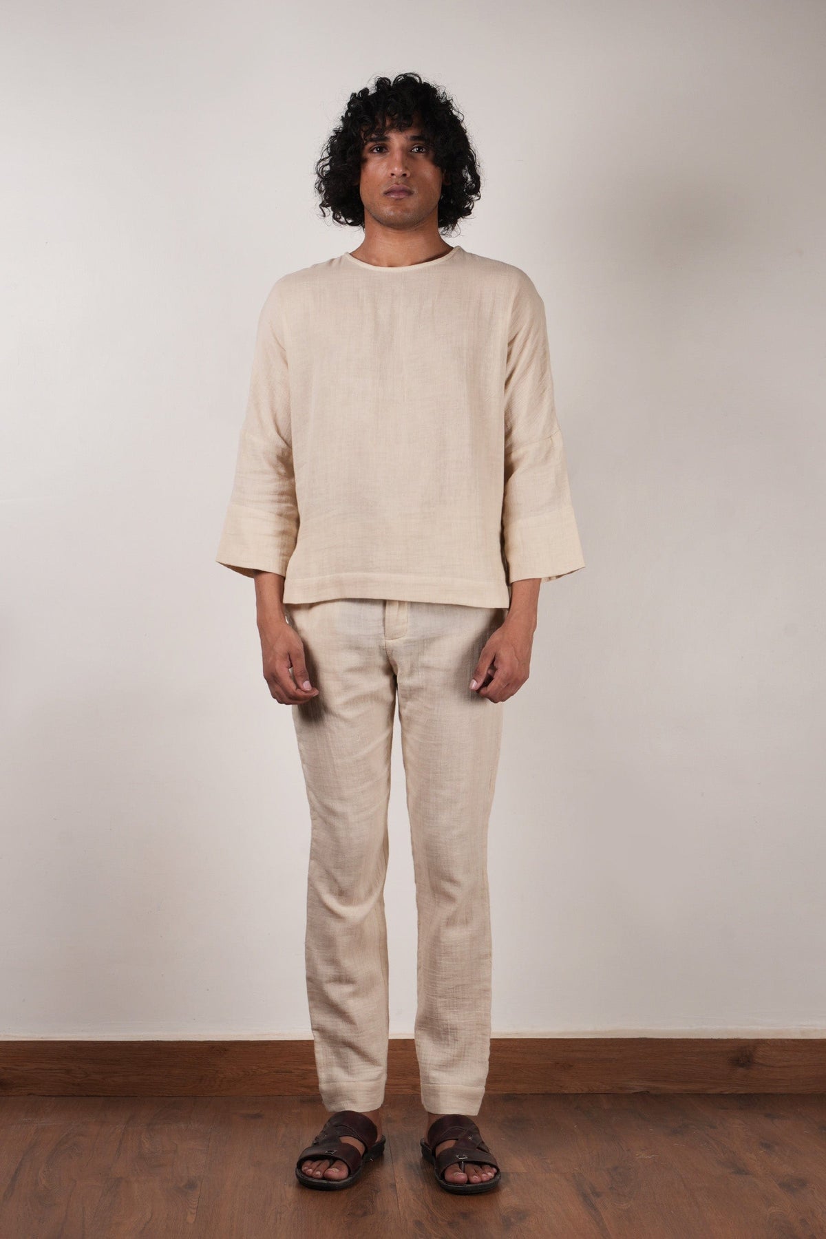 Straight cut crush pants made in 100% natural cotton with side pockets and front opening. Team it up with the pocket shirt or the crush t-shirt from this collection to complete the set.