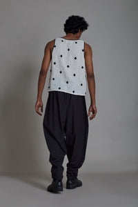 A fusion of style and comfort this all over embroidered linen top will be a perfect addition to your wardrobe Tailored to sartorial perfection from premium quality fabric, it assures a soft and soothing touch against the skin. The round neck and embroidery add to its appeal. Style it with balloon pants from our collection for a casual look.
