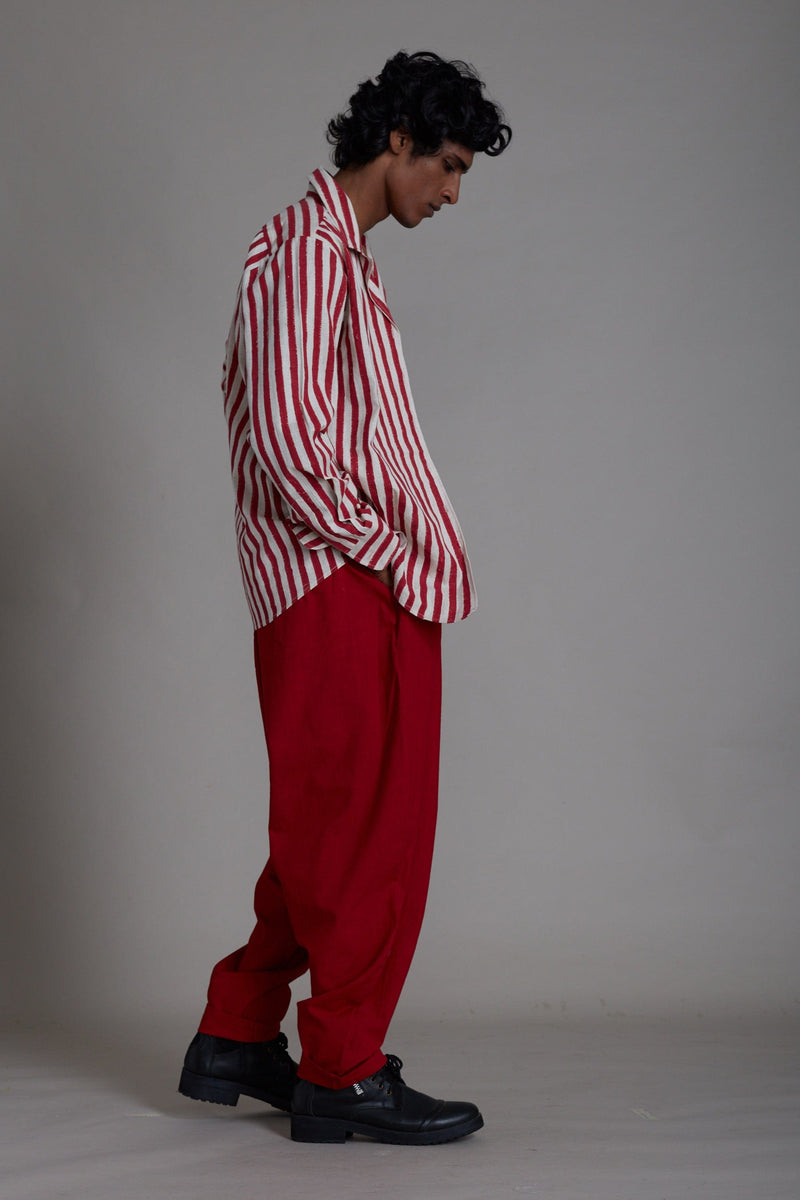 This stripe Shirt is a classic add on to your basic shirt wardrobe. The hand block printed stripes  and notch  collar gives an edgier and smart look. Pair it up with ankle pants from our collection for a perfect desk to drink look. You can style this versatile piece with an array of options.