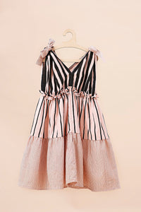 A tiered mixed striped dress made with soft cotton and hand block print with chemical free dyes. Comes with a bow headband..