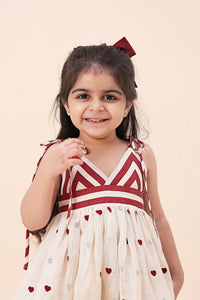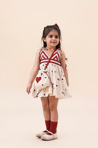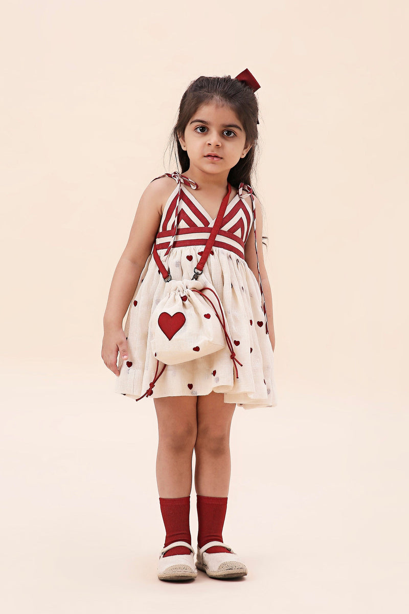 Mini MATI Girls Rummy Dress-Oatmeal Hearts