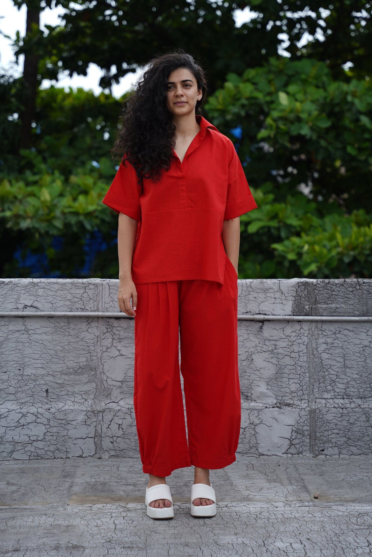 Red Ekin Shirt & Hera Cotton Co-Ord Set (2 PCS)
