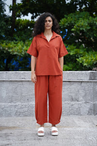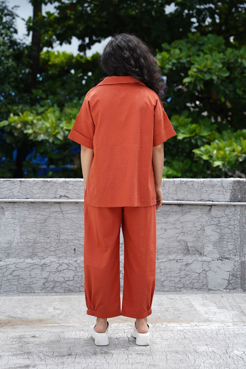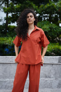 Rust Ekin Shirt & Hera Cotton Co-Ord Set (2 PCS)